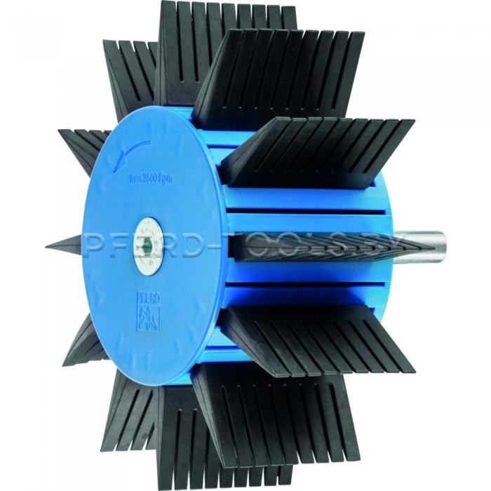 Шлифовальный круг состоит из несущего элемента с хвостовиком и резиновых пластин. Необходима доукомплектация соответствующими шлифовальными пластинами. Комбинация шлифовальных и резиновых пластин и схема их расположения придают инструменту необычайно высокую гибкость.