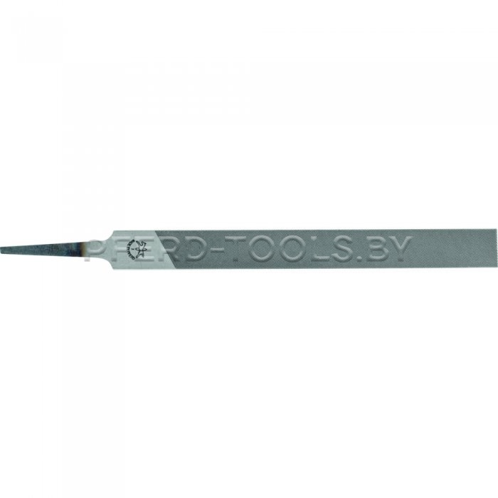 Плоский напильник с хвостовиком имеет два круглых края без насечки, форма F по DIN 7262, поставляется две различные длины.