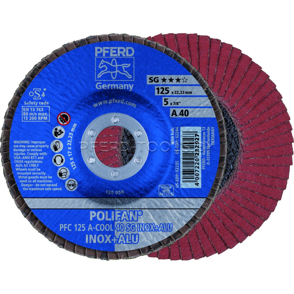 Круг шлифовальный лепестковый A-COOL SG INOX + ALU для «холодного» шлифования материалов с плохой теплопроводностью, такие как нержавеющая сталь и алюминий.