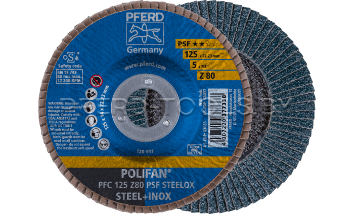 Круг шлифовальный лепестковый Z PSF STEELOX для агрессивной обработки, с высокой производительностью и хорошей стойкостью.