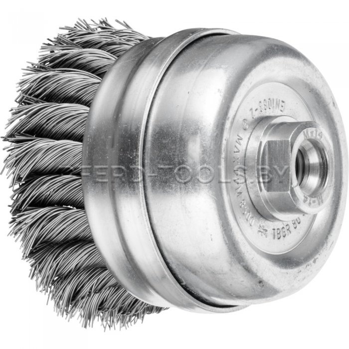 Щетка чашечная плетенная TBGR для работ в жестких условиях. Оптимально подходит для тяжелых работ по большим площадям, устранения заусенцев, очистки и удаления ржавчины с поверхности. За счет опорного кольца предотвращается боковое смещение плетеной проволоки.