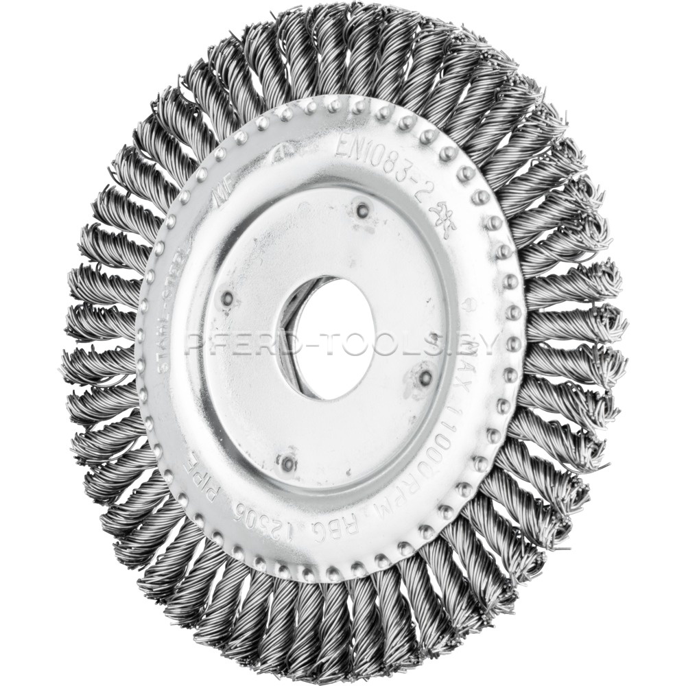 Щетка дисковая плетенная RBG PIPE (PIPELINE). Агрессивная и прочная щетка, выдерживающая высокие механические нагрузки. Оптимально подходит для работ в тяжелых условиях в строительстве трубопроводов и контейнеров. Сверхузкое исполнение данной щетки прекрасно подходит для обработки труднодоступных мест, например, корня сварного шва.