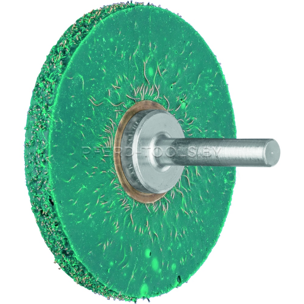Щетка дисковая неплетеная вулканизированная с хвостовиком RBV для работ средней тяжести. Возможно выполнение точных работ за счет залитой пластиком проволоки.